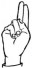 На ћирилици написано АНДЈЕЛИНА МУМАЛО састоји се из 15 слова [?]. Исписано ћириличном једноручном азбуком за глувонеме: